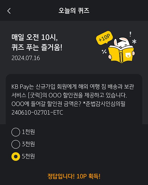 KB 페이 리브메이트 7월 16일자 오늘의 퀴즈는!
